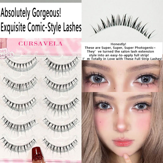 100pcs CURSAVELA 9mm Natural Comic-Style Short False Eyelashes - One-Strip Design for a Subtle, Camera-Ready Look