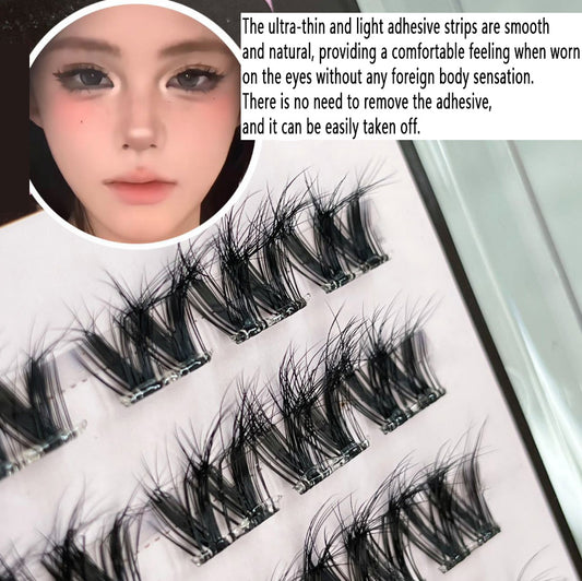 5D Baby Curl Layered Effect! Fluffy Natural-Style False Eyelashes Lazy Girl Three-Step, Single Cluster Realistic Design