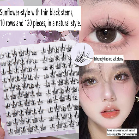 120 Clusters, 10 Rows - Large Capacity Imitation Sunflower False Eyelashes, Natural Flat Eyelash Makeup Essential, Wholesale Special Offer