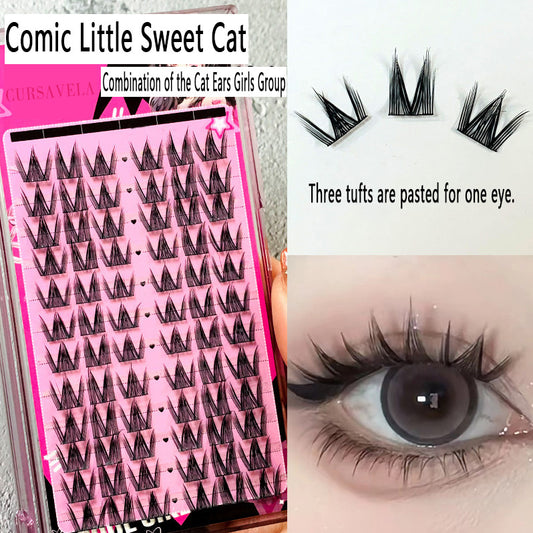 Comic Sweet Cat Single Cluster False Eyelashes: Natural & Dense, Get the Girl Group Look, Beginners Become Eyelash Pros in No Time!