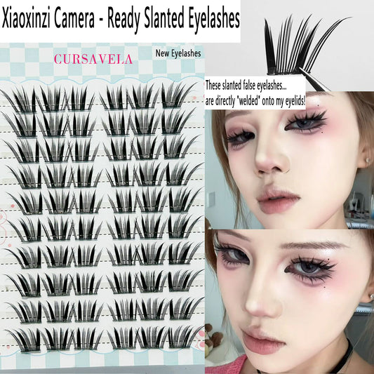Individual DIY lashes Foxy & Seductive Manga False Eyelashes - Camera-Ready Slanted Style, Thick & Natural Pure Allure Vibe