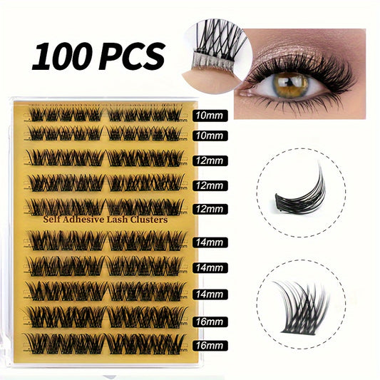 Individual DIY lashes Self-Adhesive Fluffy Cluster Eyelash Extensions - No Glue Needed, 40pcs/100pcs, Dense & Voluminous, 10-16mm Length, Easy Application, Doll & Cat Eye Look