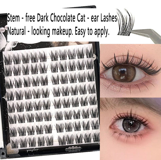 Glue - free Stemless Dark Chocolate Cat - ear False Eyelashes, 8 - row Large Capacity, Effortlessly Create Natural - looking Eyelashes