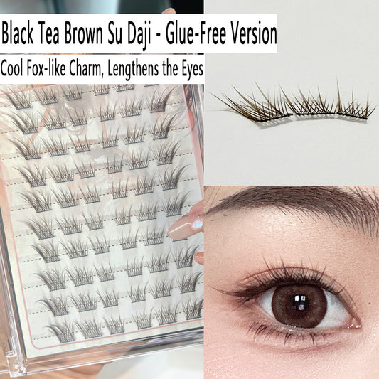 Individual DIY lashes Glue-Free Version Black Tea Brown Su Daji: Fox-Inspired Charm Segmented False Eyelashes – Natural, Voluminous & Lifelike